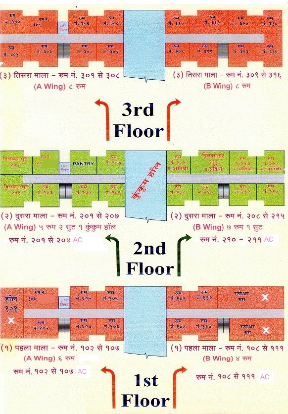 41 Fully Ventilated Rooms, 16 AC + 3 Suite Rooms, 25 Non AC Rooms